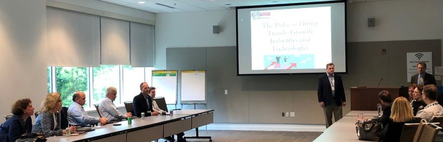 On May 23rd the SIM Boston Member Career Development meeting kicked off the Technology Leadership Series event. Jim Hansen from Millennium Consulting captivated the audience with “The Pulse of Hiring Trends, Growth Industries and Technologies”. Drawing on 30 years of experience as a talent accusation leader, Jim shared insights into current hiring trends and the most effective techniques to use while searching for a new role. The meeting was followed by an intermission that included great food, drinks, and opportunities to network with friends both old and new. Sincere thanks to Jim Hansen, the SIM Administrative staff, and all of the meeting participants whose contributions made this event such a success…